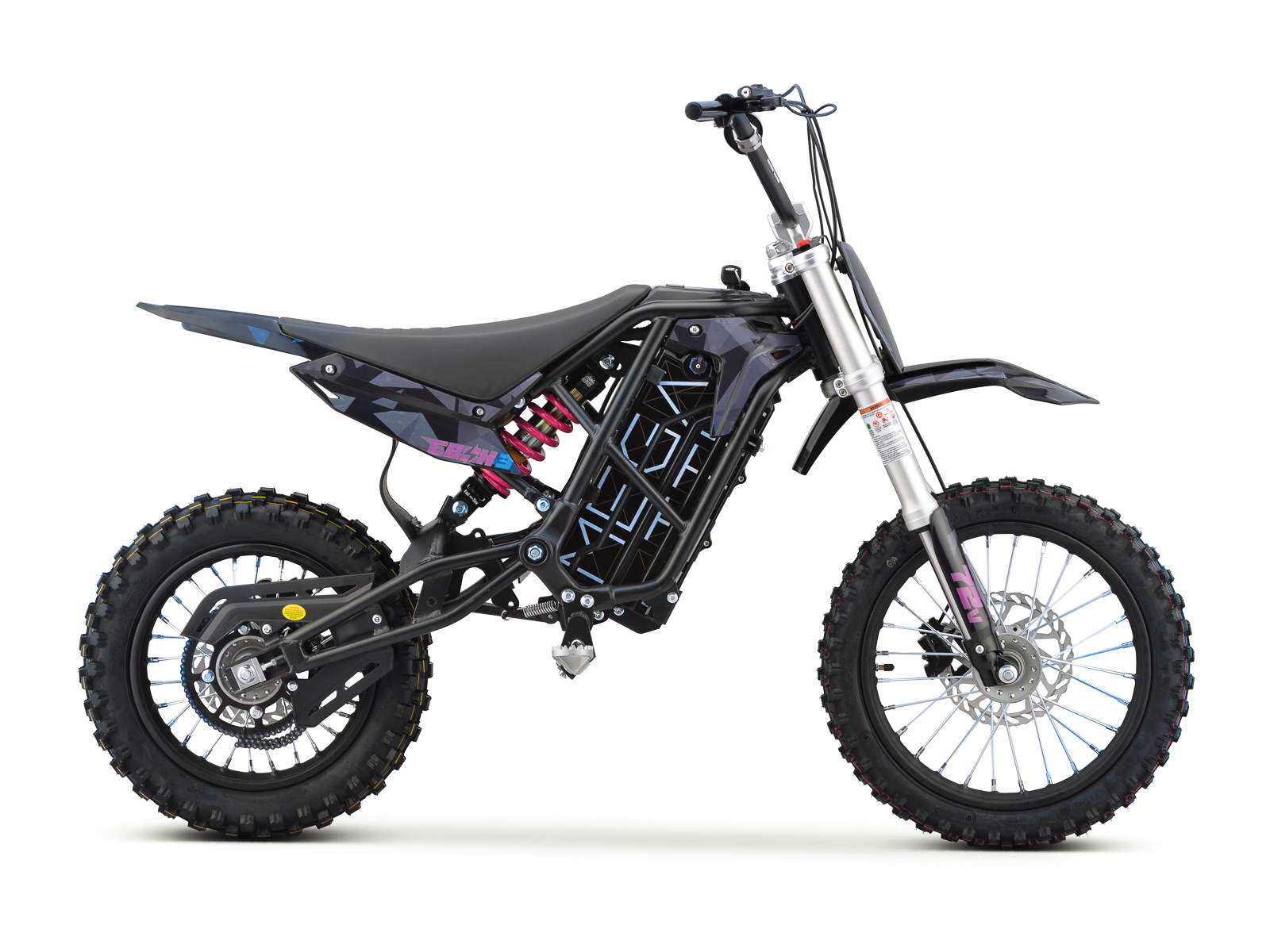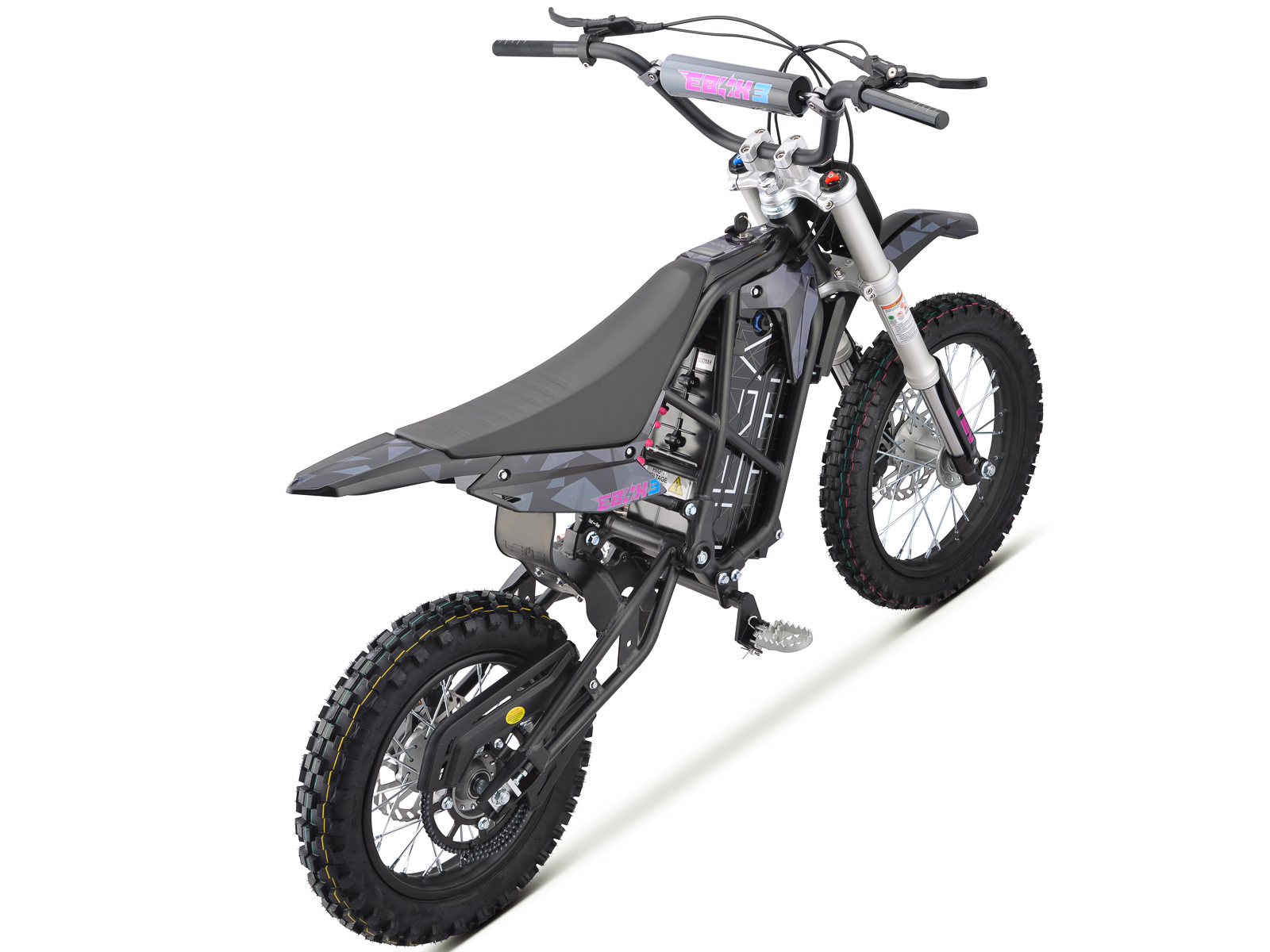 - Frame construction: V2 race inspired geometry, High strength steel, powder coated, removable subframe, swing arm mounted motor, non linkage suspension